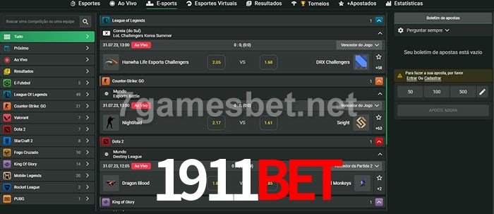 O 1911Bet oferece uma grande seleção de opções de apostas em e-sports com probabilidades competitivas